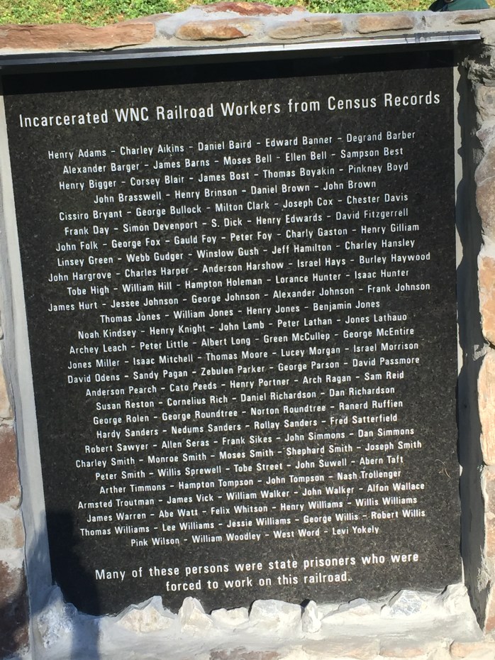 The construction of the Mountain Division of the Western North Carolina Railroad is widely considered one of the greatest human accomplishments in regards to both engineering and construction ever undertaken at the time it occurred. The project took place over a period of several years in the late 1800s. Many people are aware that the railroad provided the first dependable access to and from much of Western North Carolina for the rest of the state as well as much of the nation. Many also know the names of some of those who were instrumental in seeing through the completion of this ambitious project. Names such as Colonel Alexander Boyd Andrews, of Andrews’ Geyser fame. However, what most people are unaware of is that at least 95% of the labor which built the railroad across the Blue Ridge Escarpment was completed by inmates from the North Carolina State Penitentiary… and approximately 98% of those inmates were African American men… the majority of whom were unjustly imprisoned…