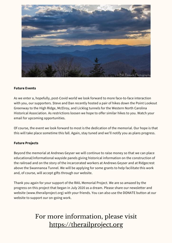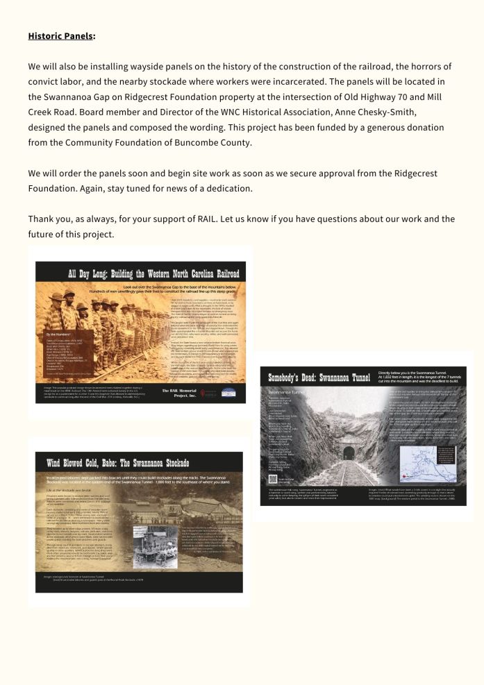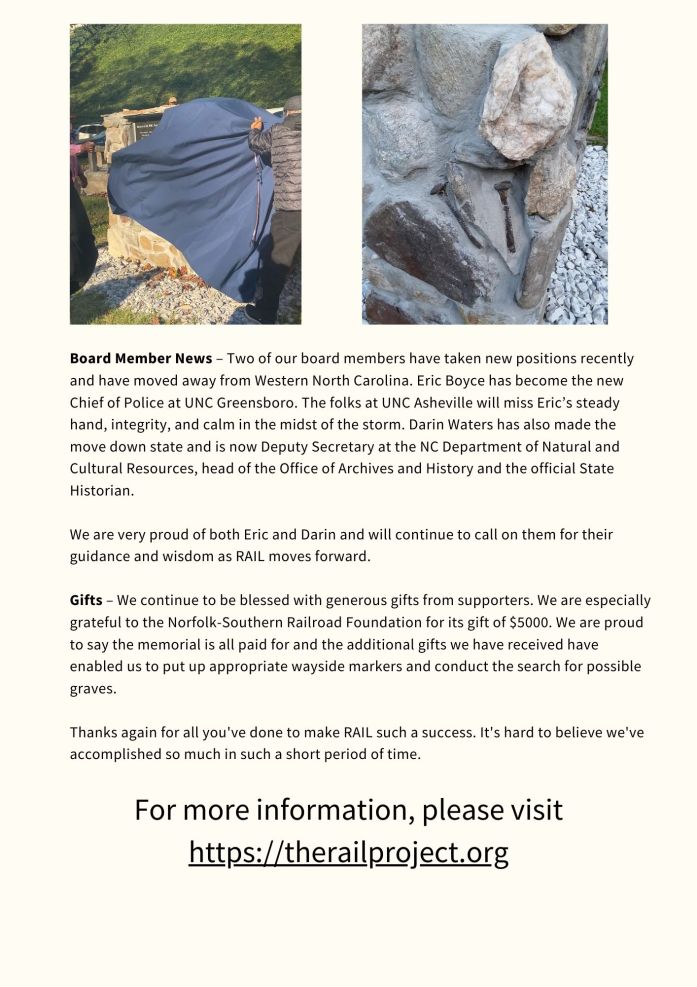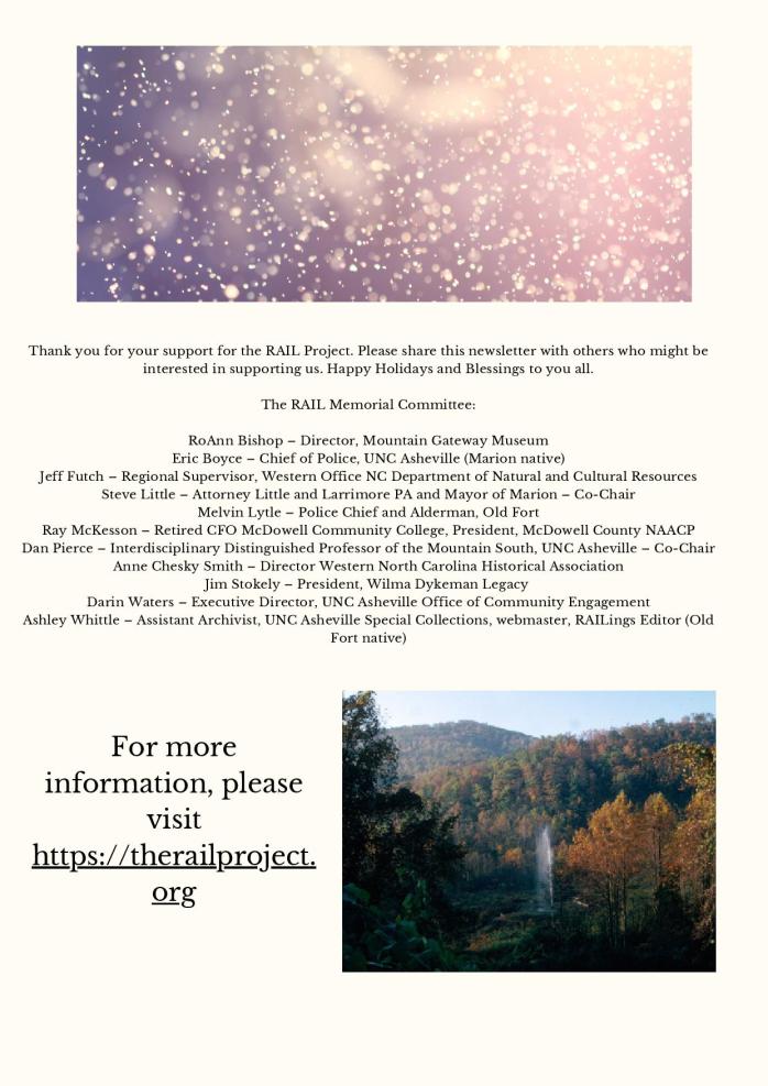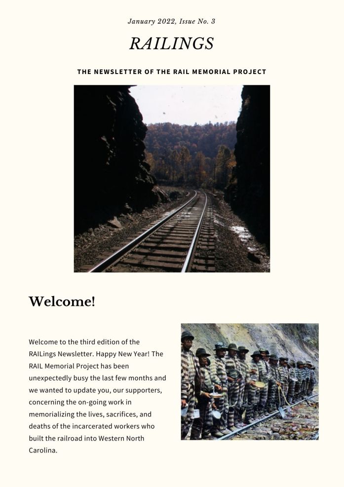 Welcome to the second issue of RAILings, the newsletter of the RAIL Memorial Project. We hope you enjoy the newsletter and learn more about our work.